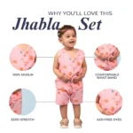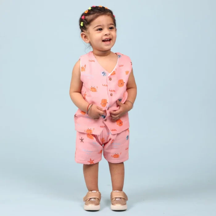 Bring beachy vibes to your baby’s wardrobe with the Crabs Muslin Jhabla Top with Shorts. Crafted from premium, breathable muslin cotton, this adorable set includes a traditional jhabla top and matching shorts, both featuring cute crab prints that are sure to delight. The jhabla is designed with tie-up or button closures for easy dressing, while the shorts have a soft, stretchable waistband to keep your baby comfy and free to move. Perfect for warm weather, naptime, or playtime, this set combines style and softness in the cutest way possible.