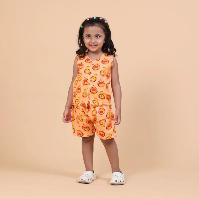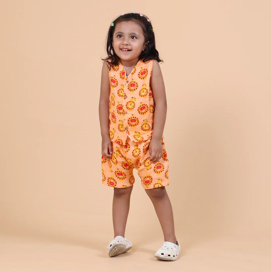 Keep your little cub comfy and cute in our Lion Muslin Jhabla Top with Shorts—crafted from ultra-soft, breathable muslin and finished with adorable lion prints for all-day play and comfort.