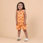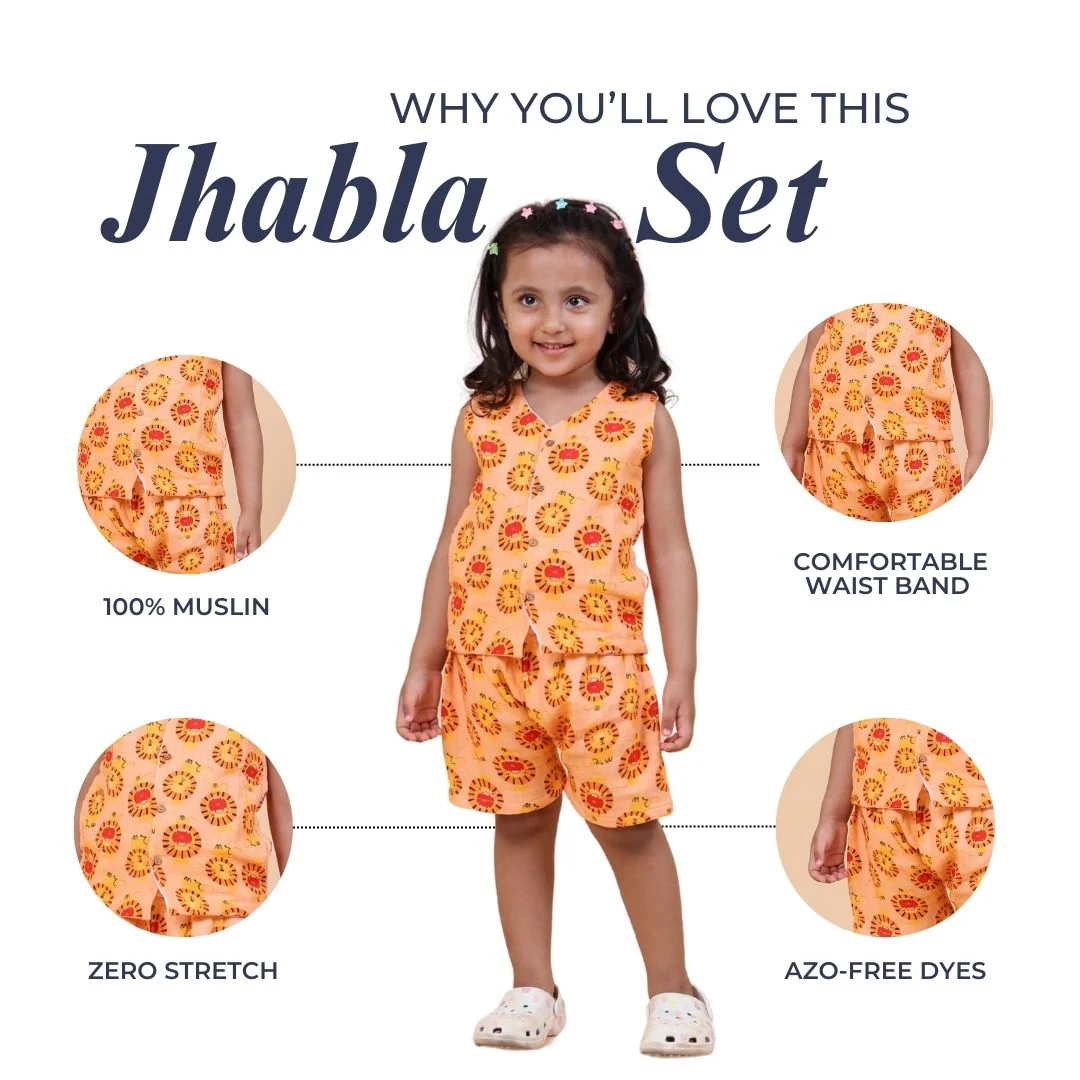 Roar into comfort with our Lion Muslin Jhabla Top with Shorts, designed to keep your baby happy, cool, and free to explore. Made from lightweight, breathable muslin cotton, this two-piece set includes a sleeveless or short-sleeve jhabla (traditional baby top) featuring fun lion prints and matching soft shorts with an elasticated waistband. Gentle on delicate skin and easy to wear, this outfit is perfect for warm days, tummy time, or playful naps. Button or tie-up closures ensure hassle-free dressing, making this a must-have in every baby’s wardrobe.