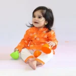 Add a dose of sunshine to your little one’s wardrobe with the Orange Rainbows Cotton Kurta Set. Designed for comfort and joy, this set features a soft, breathable cotton kurta in a vibrant orange hue, decorated with playful rainbow prints that spark imagination and smiles. The kurta has a relaxed, child-friendly fit with soft seams and easy movement. It comes paired with coordinating pants that complete the look, making it perfect for daytime outings, celebrations, or casual play. Lightweight, colorful, and easy to care for—this set is a must-have for the happy-go-lucky kid.